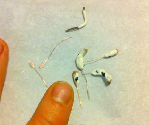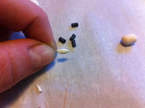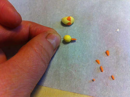 Premade la piernas, cola y orejas de los animales. Yo también premade la oveja cara, el hocico de cerdo, el cara de gallo y el proyecto de ley de pato. La cola de vaca tiene bordado seda dentro en lugar de alambre, y la punta de la cola ha expuesto seda en lugar de arcilla por lo que permanecerá suave y mullida. Sí, las patas traseras de la vaca están demasiado largas para las patas delanteras. Ignore mi vaca deforme. :)