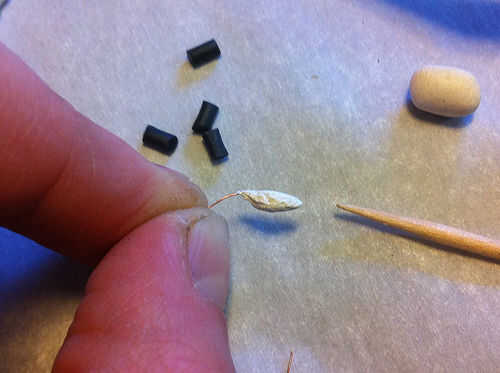 Asomó a la cola de oveja con un palillo para que se vea un poco borroso (o tal vez sólo con hoyuelos).