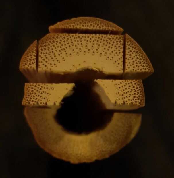 Selección de la parte derecha: el bambú es un material divertido. Frente a los árboles, el bambú tiene sus fibras más fuerte miente más cercano a la superficie, justo debajo de la capa de película dura y protectora llamada esmalte. Vea la foto. Disminución de la densidad de las fibras desde el exterior hacia el interior. (Ver imagen) En este instrucable he estado utilizando tallos de bambú barata desde el centro de jardinería utilizado para fines agrícolas como estacas de frijol. El no costo tanto conseguir algunos y seleccionar los que son seco pero fresco. (doblar, deja que rebote en el piso) Haz los tallos más directo.