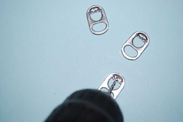 Suavemente abre cuatro anillas y a través de cada uno de los agujeros. Toma un tire de la pestaña (pestaña pop) y colgar sobre los dos salto los anillos en cada extremo (hay dos aberturas en la lengüeta - uno por cada anillo del salto), luego usando las pinzas otra vez, cerrar hasta los anillos de salto. Ahora tiene una lengüeta en cada extremo de la pulsera. Trabajar suavemente en la pulsera para obtener una curva en ella. Puse en mi muñeca y suavemente lo empujó hacia abajo en mi muñeca un par de veces. Trabajar hasta que tenga una buena curva. Con dos más jump anillos: abra uno y ponerlo a través de uno de los orificios en la pestaña de tracción en un extremo de la pulsera, luego cerrarla. Abrir el anillo del salto, ponerlo a través el pequeño bucle en el corchete de la langosta, luego a través de un agujero en la lengüeta en el que el extremo de la pulsera, luego cerrarla.