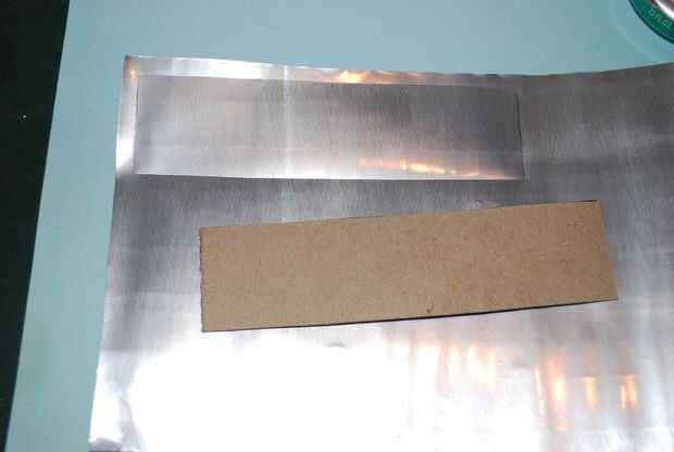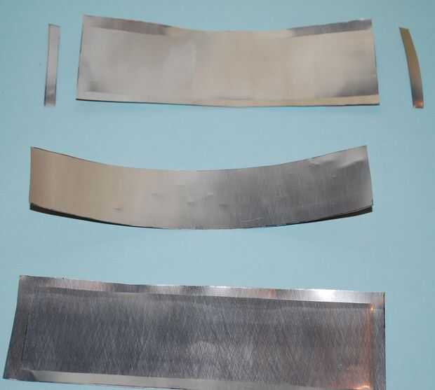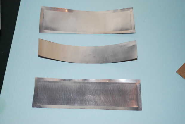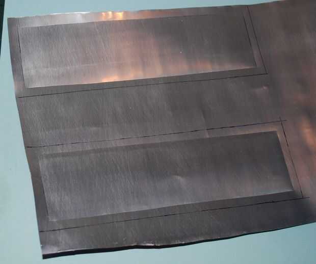 Ahora tienes tres piezas de hojalata. (ver foto). El pedazo de centro no tiene trazados con sangría.
