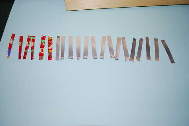 Ver la última foto aquí mostrando todas las tiras que terminó con. (Tenga en cuenta cómo se puede ver que el 1/4" termina con el sangrado del trazo de la pluma). Convierten todo para que puedas ver los colores de patrón.