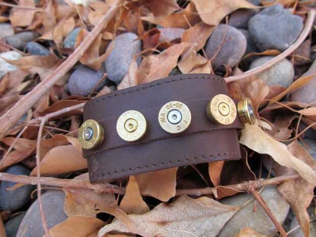 Por último, clava las balas sobre la pulsera a mano. Pensé que parecía fresco que alterna los casquillos superelegantes entre níquel y latón. Gracias por ver.