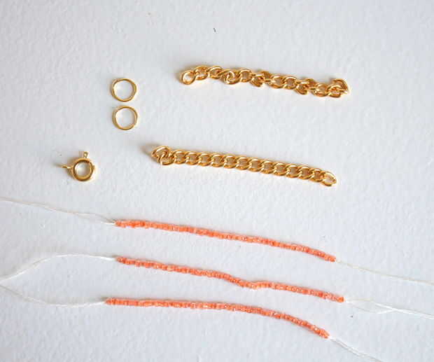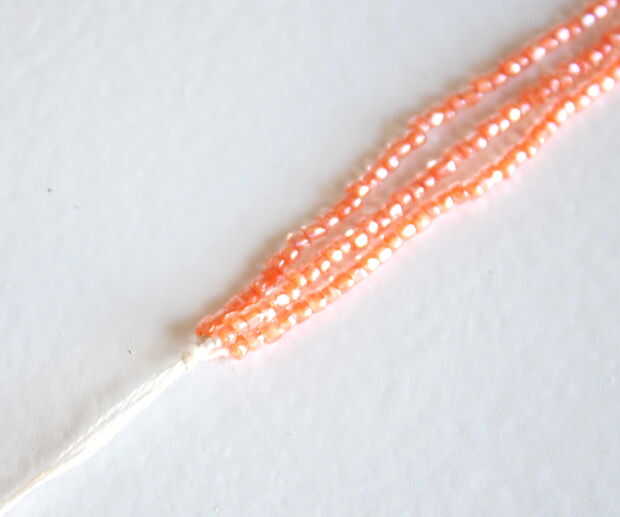 Tomar todos sus filamentos de granos (que deben todos tener la misma longitud!) y atar las cuerdas en los extremos juntos. Tratar de que el nudo como cerca de los granos como sea posible. Usted puede asegurar esta un poco de pegamento si eres nervioso. :)