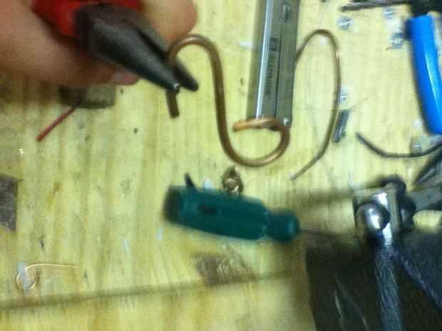 Ahora voy a mostrar cómo hacer el cierre de la pulsera. Empezar por hacer un lazo en un extremo de la pieza de alambre. Luego cortar el lazo con unas 3 pulgadas de alambre sobrante. Entonces el alicate para doblar un gancho en el cable. Entonces, cuando la pulsera es del tamaño adecuado, sujete el broche de gancho.