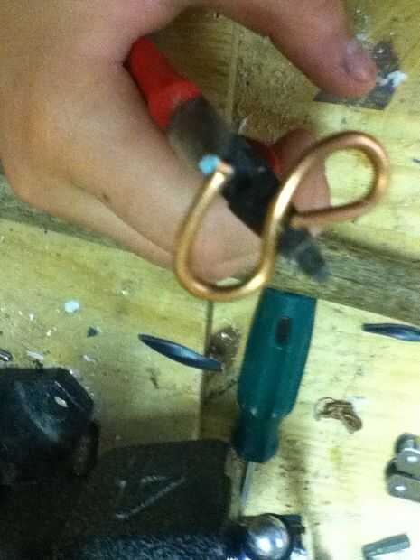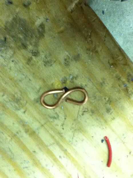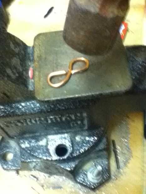 Después de haber cortado el cable, cama al final de cerrada para hacer un lazo. Debe mirar como un símbolo de infinito. Entonces martillo plano. Nota: quizá deba cerrar los enlaces de respaldo después de martilleo.