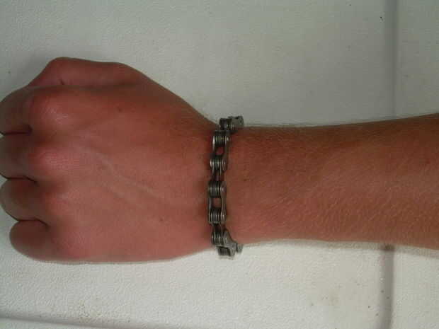 si tienes una de repuesto cadena de la bici o simplemente quieres ser un motorista fresco, ¿por qué no tiene un brazalete de aspecto apretado? Se trata de cómo hacer un breacelet de una cadena de bicicleta. Puede ser tan apretada o floja como quieras (opté por tenerlo piel apretada). No he tenido tiempo para adaptarse a un broche de presión en el brazalete, así que una vez que está encendido, está metida hasta la oportunidad de volver a utilizar la herramienta de la bicicleta. ¡Que te diviertas!