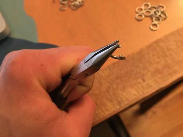 Del mismo modo, los anillos tendrán que abrir un poco más de lo que será. Como se puede ver en la foto, abrir los anillos de la fuerza sobre el anillo de tracción suficiente que fácilmente pueden ser tejidos en otros anillos, pero no demasiado que lugares innecesario o sesga la relación de aspecto del anillo.