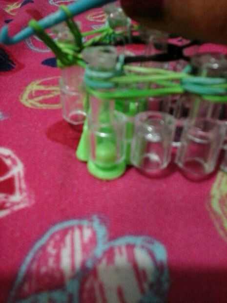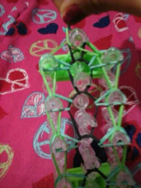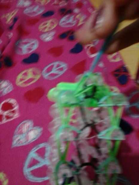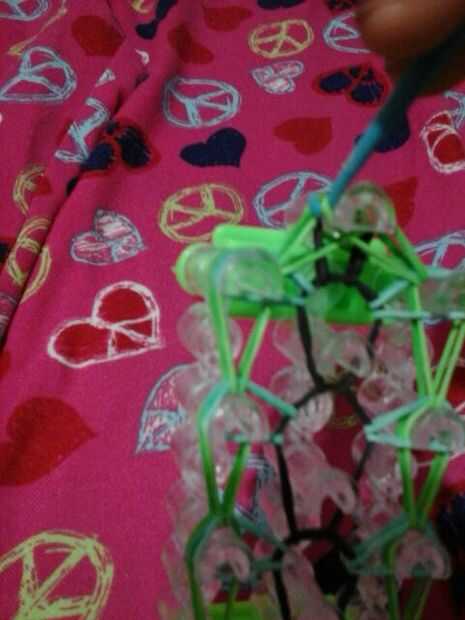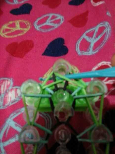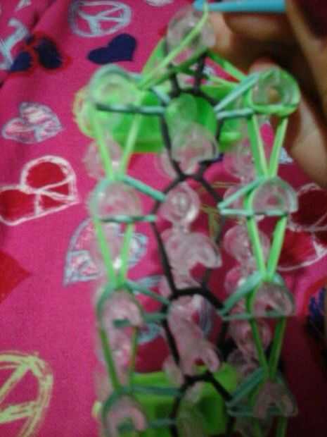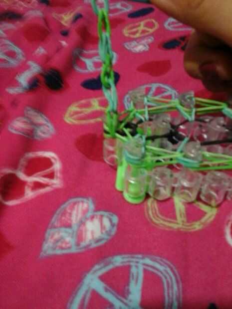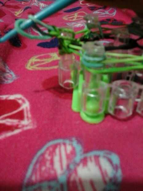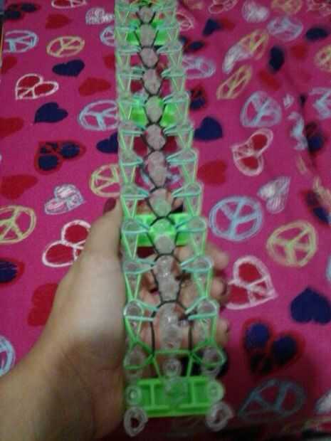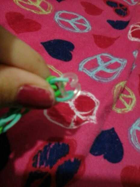 Ahora puesto que la pulsera es pequeña desea hacer una cadena ponga el gancho a través de todas las bandas y hacer su cadena tirando de la banda a través de la continuar