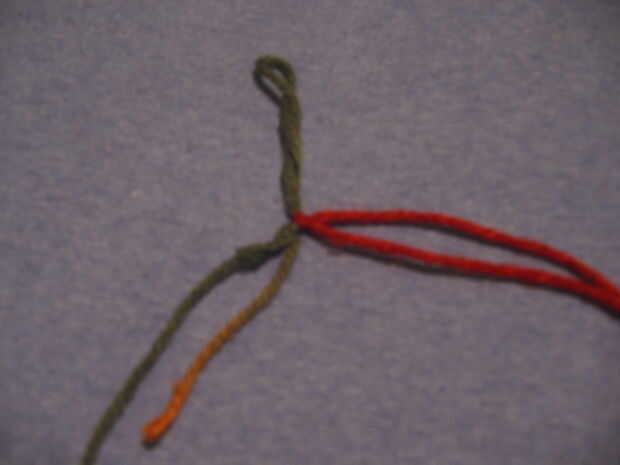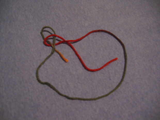Volver al extremo opuesto de la cadena (donde comenzaste) y hacer un nudo nuevo, como si eran a partir el proceso anudado en la dirección opuesta. Apriete el nudo pero no tire un segundo bucle, solo deje un bucle que acaba de hacer.