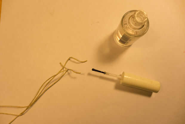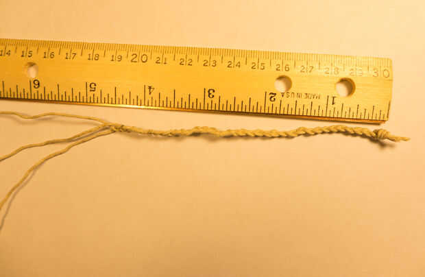 A continuación poner esmalte de uñas transparente o pegamento en los extremos del cáñamo. Luego trenzar el cáñamo en 4,5.