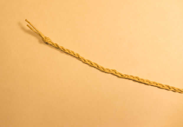 Después de agregar los granos, el cáñamo siguen la trenza y un nudo.