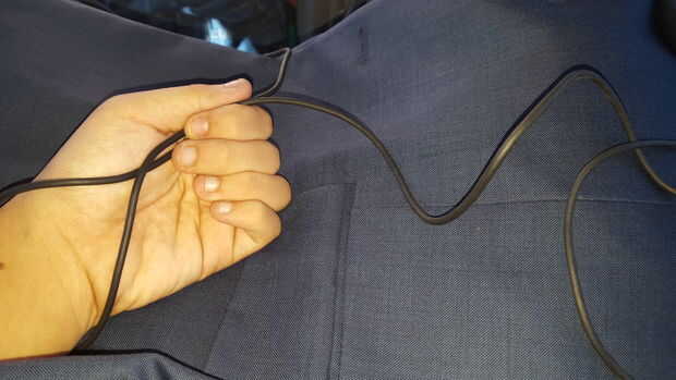 2) quitárselo de la muñeca y cruzar los dos lados de los cables