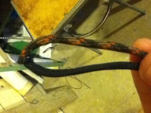 1 calentar uno de los extremos de ambos cables hasta que estén líquidos. Pega los dos extremos juntos y dejan enfriar. Tratar de hacer el nudo donde se fusionan las cuerdas un poco más pequeña que hice. La mía es incómodo por ello.