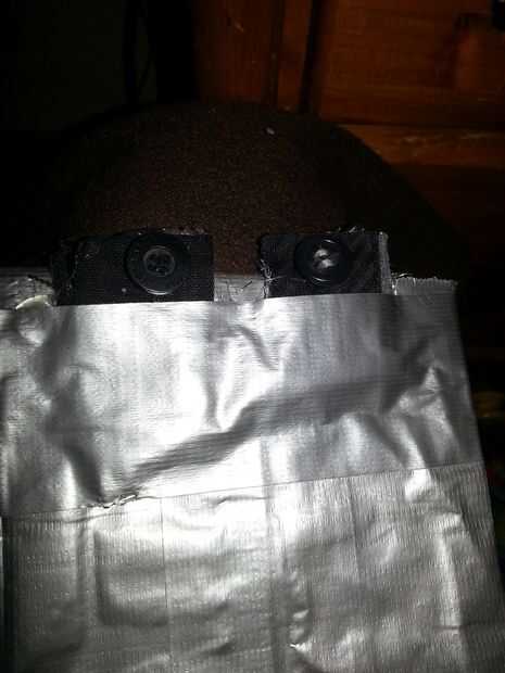 primera cinta toda la trasera de la bolsa, taping pliegues lo que tienes que montar el bolso a su necesaria... requisitos, que la cinta en una manera de hacer acabar... palillo juntos (palo no probablemente es la palabra mejor pero lo que sea) he utilizado algunos botones de pantalones viejos (shhh también utilicé pegamento caliente)