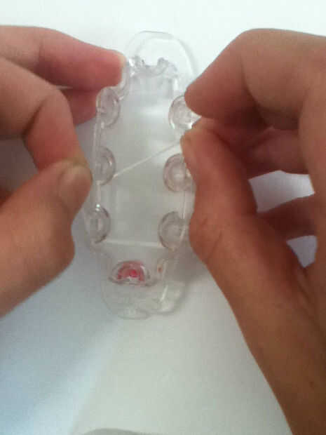 Comience colocando su primera banda blanca alrededor de 4 pernos, formando un cuadrado.