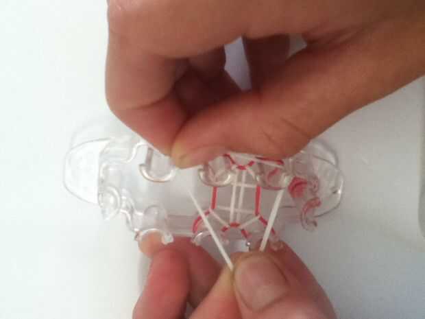 Paso 1: Lo que usted necesita Se necesita:• un telar• gomas• un gancho• un clip S o CPaso 2: Colocación de bandas Tome su primera banda y colóquelo a la izquierda. Luego tomar su segunda banda y colóquelo a la derecha. ASEGÚRESE DE QUE FLECHA TE ESTÁ