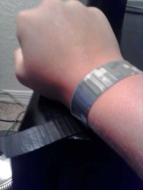 Paso 1: Cómo empezar Necesita tijeras de muñeca (opcional) cinta de conducto¿Paso 2: Que corte la cinta?Usted necesita cortar la cinta de manera que la pulsera puede deslizar y apagar cuando sea necesario para regulares muñecas 7 en obras.Paso 3: En