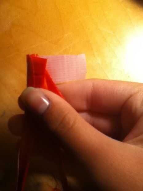 esto es una pulsera cool que obtendrá un montón de comentarios y siento mucho no tengo muchas fotosPaso 1: Hacer una tira de cinta adhesivaHacer una cinta tira toma una tira y otra tira en la parte superiorPaso 2: Hacer el arcoLocalizar el centro de