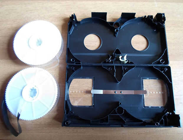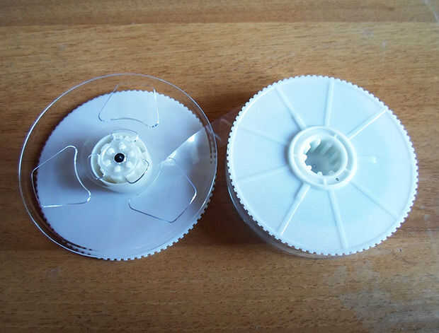 Todo lo que tienes que hacer es quitar las 2 "ruedas" blanco que contienen la cinta negra y dejando de lado el resto de la cinta.
