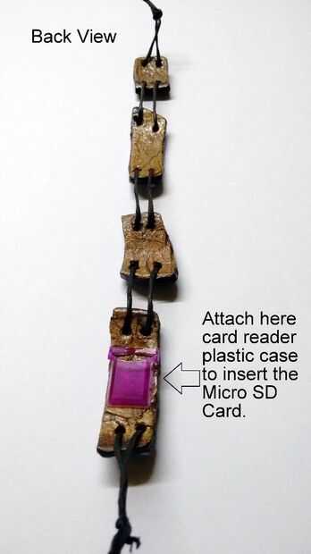 Reverso del trozo de cáscara de coco colocar la micro sd tarjeta lector de casos a los pedazos de cáscara de coco porque al insertar la tarjeta micro sd. Siguen las fotos.