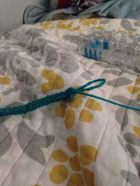 Cómo hacer una pulsera cola de pescado del telar de arco iris con los dedos