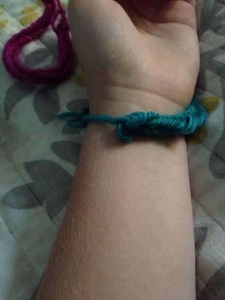 Cómo hacer una pulsera cola de pescado del telar de arco iris con los dedos