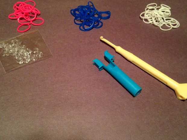 - y un mini telar. (Si no tienes un mini telar puede hacer esto en un telar normal, use dos clavijas. O si no tienes uno, puedes hacerlo con tus dedos en su lugar.)