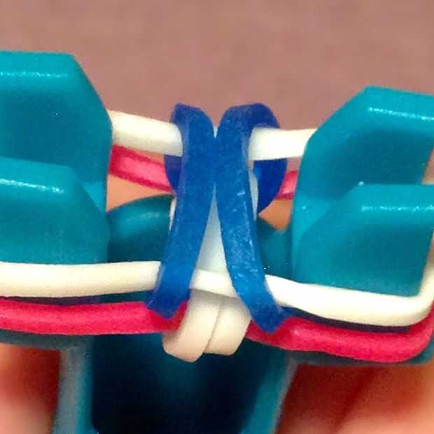 Consejo rápido: Si tiendes a olvidar de qué color su supuesta a hacer a continuación, mire la última puntada hiciste. La siguiente banda es del mismo color que la puntada en el centro. (La cosa azul que zoom en)