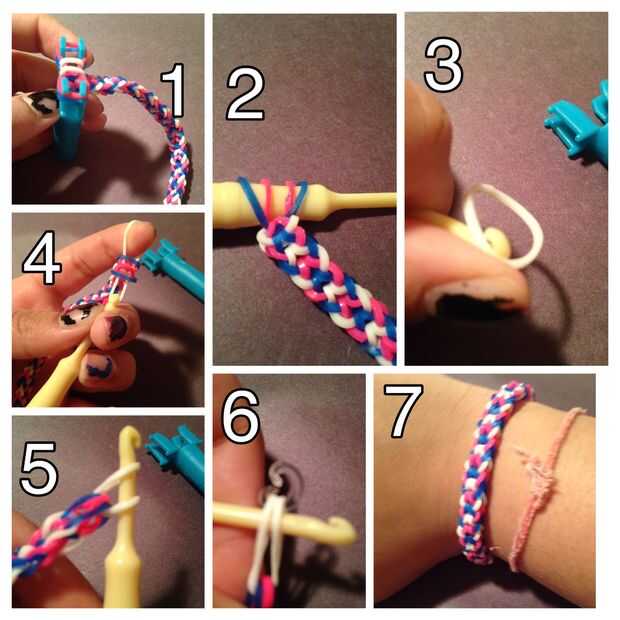 2) tomar los bucles restantes en su telar y deslícelos en su gancho.