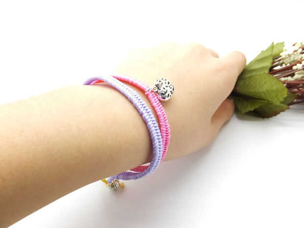 si triple trenzado es dominado sin obstáculo alguno, este diseño de pulseras de amistad fácil será ser agarrada, sin duda, a corto plazo; la sutil diferencia entre trenzado triple común y este diseño es tejer un cordón en cuando echó a un lado de la