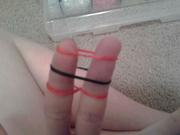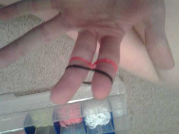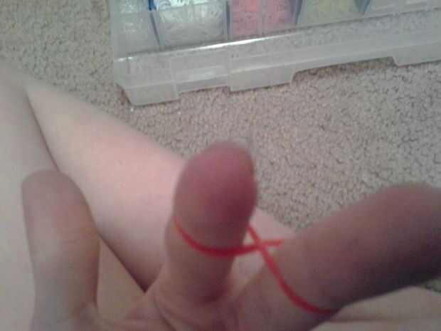 Que usando los trabajos de telar de cray-Z-telar de hoy, pero cualquier otro también...Paso 1: Tome su primer color de bandas de caucholo siento si la foto está al revésPaso 2: Colocar el primer color en cualquier lugar en el telar en un loco ocholo