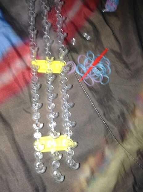 esto es como se verá cuando termine.Paso 1: Primero gire la banda de goma como esta.Paso 2: a continuación, agregue dos bandas más.Paso 3: Luego hacer esto.Paso 4: Luego colocar otra banda.Paso 5:Luego solo seguir haciendo lo mismo entonces parar y c