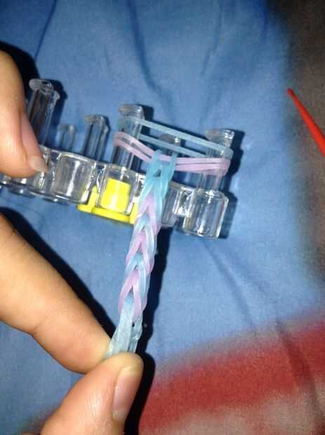 esto es como se verá cuando termine.Paso 1: Primero gire la banda de goma como esta.Paso 2: a continuación, agregue dos bandas más.Paso 3: Luego hacer esto.Paso 4: Luego colocar otra banda.Paso 5:Luego solo seguir haciendo lo mismo entonces parar y c