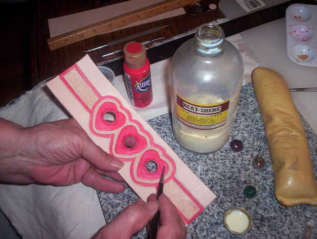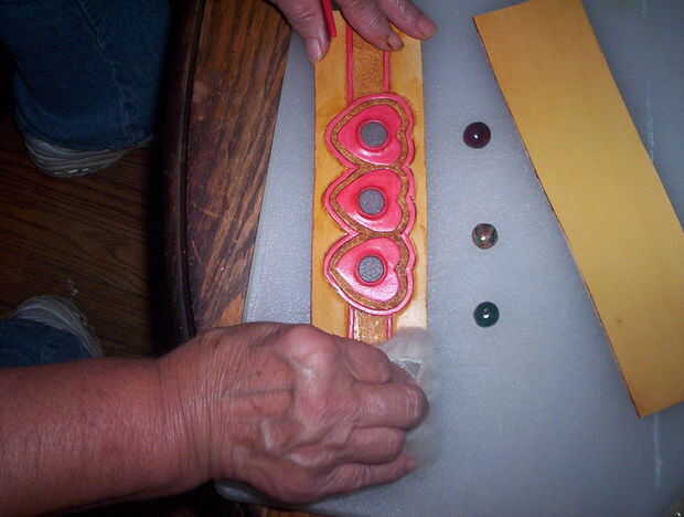 Paso 10: Cuero del corazón pulsera con piedras con incrustaciones de cuero