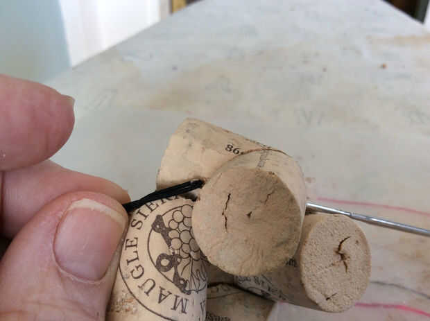 Empuje el gancho por el lado lejano de la chevron más cercano al nudo y 1 de los extremos sueltos del gancho agarrador y páselo a través.