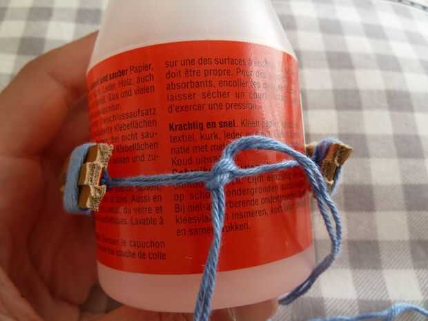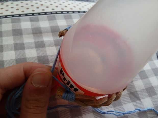 Ya que la pulsera es totalmente recta y el encaje no es tan fácilmente shapeable como hilado por ejemplo, puede ser muy útil anudar alrededor de un objeto circular primero, acababa de usar la base de la cola que utiliza.