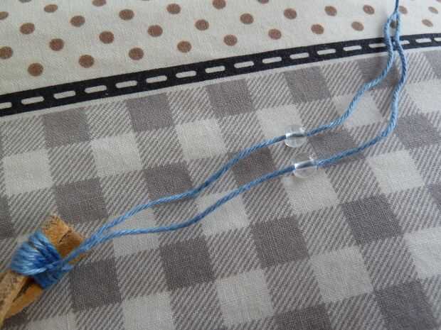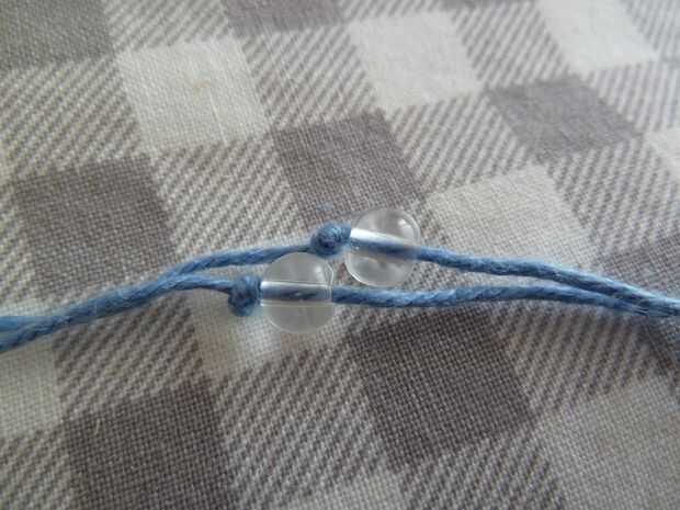 Para el otro lado: toma tus dos granos y nudo a los extremos del hilo, dejando unos cinco a diez centímetros entre la pulsera y los granos para el cierre de la pulsera.