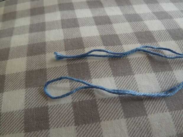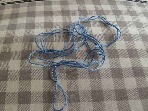 Tomar tres de los cordones y alinearlos. También corte un pedazo largo del hilo y encontrar el centro. Usted puede marcar, pero si solo sigues lo dobló hasta que usted la utiliza, debe estar bien