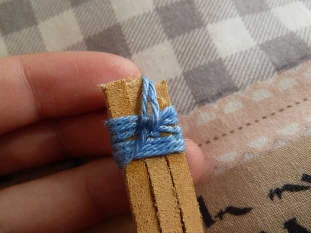 Después de un total de unos seis a ocho vueltas (podría hacer más o menos si lo prefieres por supuesto), nudo los extremos juntos. Ate un segundo nudo en la parte superior para garantizar el primero de ellos. Aplique pegamento en el nudo y sus alrededores para asegurarse de que se queda en.