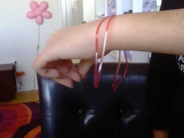Para empezar, tendrás que elegir dos colores de cordón plástico para comenzar con, y que uno quiere más de. Puede comprar cordón plástico en muchos lugares tales como Walmart, la tienda del dólar (ensamblándolos es donde proviene de este pack), tiendas, etc. del arte. Escogí rojo blanco a esta camiseta que llevo y tengo más voluntad de blanco, tan blanco ser más largo. Así que su pieza más corta (roja, en mi caso) debe envolver libremente alrededor de su muñeca dos veces con espacio de sobra para atar. (El mío es 45cm/18 pulgadas) Mi cadena blanco es cerca de 100cm de largo.