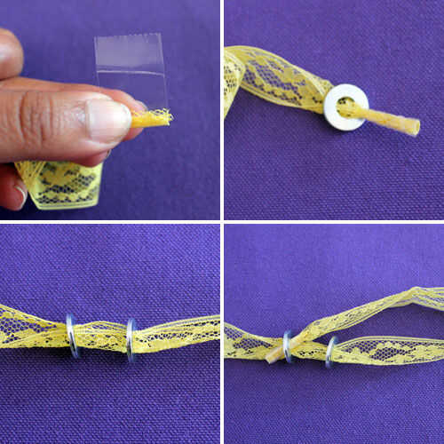 Ahora, levante su cinta sobre la segunda arandela y la armadura a través de la primera lavadora.
