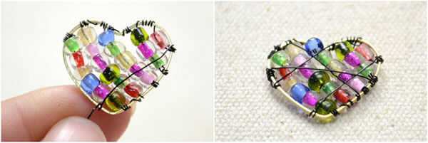 5 º, una vez terminado de agregar los granos de la semilla, envuelva la envolvente de alambre de latón sobrante el grano en forma de corazón;
