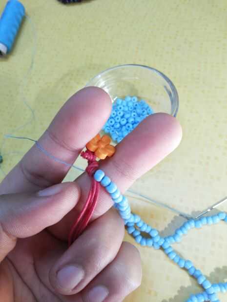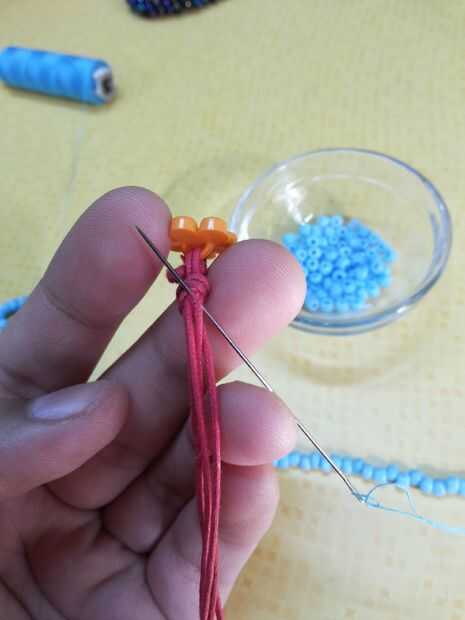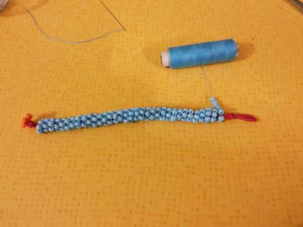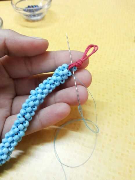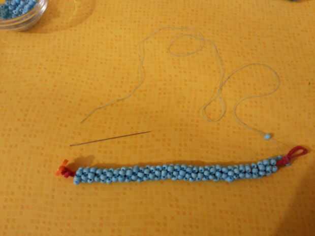 4. al llegar al otro extremo, Enhebre la aguja otra vez y garantizar las cuentas de la misma manera.