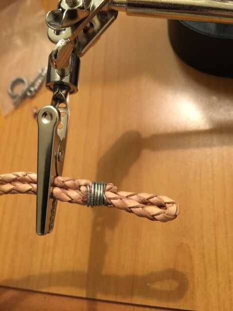 Asegúrese de cortar el cuero mientras envolviéndolo, así que envuelva la mitad de la longitud de alambre entonces cortar el cuero a la longitud y rematar. De esa manera tu pulsera es el tamaño perfecto.