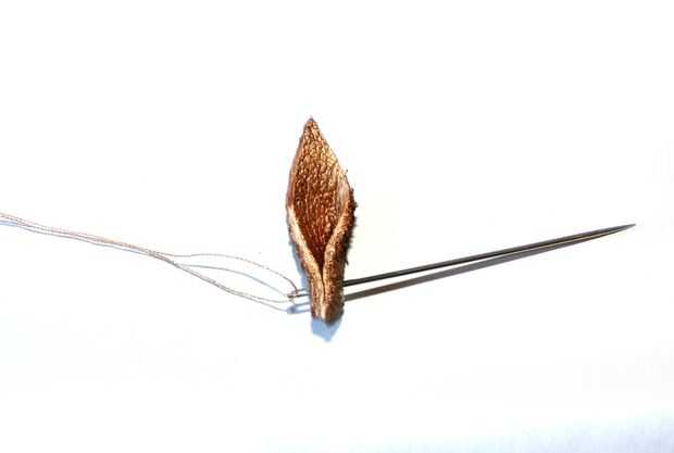 Antes de empezar a coser mi hojas ordenan mis hojas del más alto al más pequeño. Quería que el más alto en el centro y he trabajado mi manera a las hojas más pequeñas hacia las patillas.
