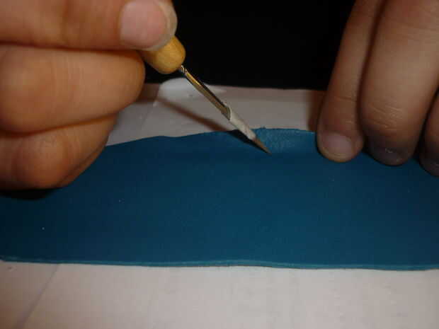 Después, taladre los orificios con el punzón. Si eres (como yo) con un punzón de diamante, deberás inclinar la lezna para evitar costuras de romper con el tiempo (ver el plan).