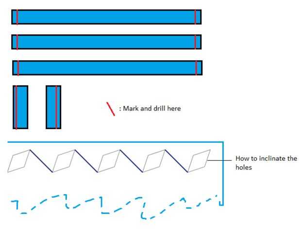 Con el divisor de ala, he marcado los lugares para los orificios donde se indica en el plan. Puede utilizar una regla para asegurarse de que usted está marcando estrecho.