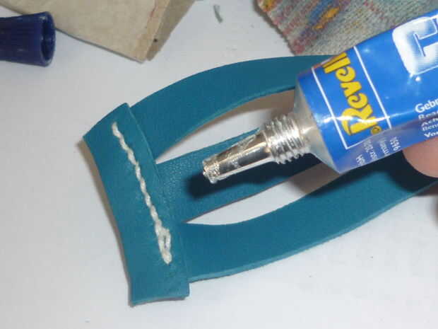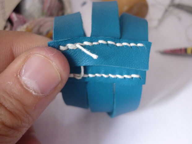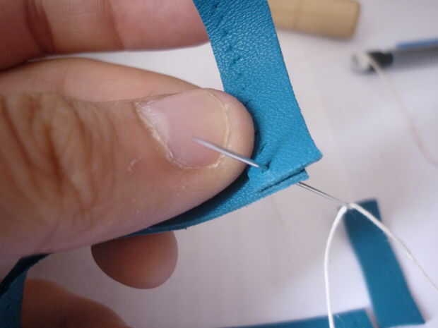 Después el último agujero, para detener mi hilo, hacer dos puntadas volviendo, que corte mi hilo lo más corto posible y me puse un punto de pegamento para asegurar.
