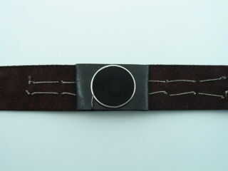 Desprenda el papel protector de la membrana. Con el lado pegajoso hacia arriba, pasar el menos hilo conductor a través del agujero, doblar el forro y presione para el cuero. Luego enrolla el hilo en el lado adhesivo en una pequeña bobina. Coloque la batería, menos hacia abajo y presione hasta que sienta que hacen buen contacto con el hilo. Debe quedarse atascado.